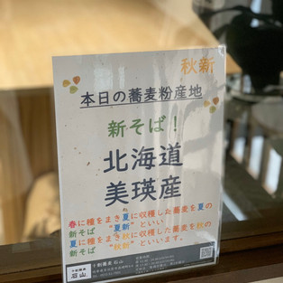 There are two main types(seasons) of soba: spring soba (summer soba) and autumn soba (fall soba). Autumn soba is the new soba that comes out around now, after the seeds are sown in summer and harvested and dried in autumn.